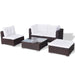 Diese Rattan-Gartensofagarnitur vereint Stil und Funktionalität und wird zum Hingucker in Ihrem Garten oder auf der Terrasse sein. Das gesamte Möbel-Set ist für die ganzjährige Nutzung im Freien vorgesehen. Dank des witterungsbeständigen und wasserdichten PE-Rattans ist das Lounge-Set pflegeleicht, strapazierfähig und für den täglichen Gebrauch bestens geeignet. Das Gartensofa-Set verfügt über einen stabilen, pulverbeschichteten Stahlrahmen, der extrem langlebig ist. Die leichtgewichtige und modulare Bauweise macht es möglich, dass Sie die Sitzgruppe, passend zu den Platzverhältnissen vor Ort, immer wieder neu aufstellen bzw. umstellen. Die dick gepolsterten, abnehmbaren Kissen sorgen für hohen Sitzkomfort. Der Lieferumfang umfasst 2 Sofa-Ecken, 1 Sofa-Mittelstück, 1 Hocker, 1 Couchtisch, 4 Sitzpolster und 5 Rückenkissen.