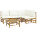 5-tlg. Garten-Lounge-Set mit Cremeweißen Kissen Bambus