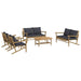 Genieße eine Tasse Kaffee oder Tee in deinem Außenbereich an diesem rustikalen Garten-Lounge-Set aus Bambus! Bambus-Set: Bambus ist für seine Flexibilität und Festigkeit bekannt. Bambus-Möbel sind eine gute Wahl, wenn du nach robusten Gartenmöbeln aus natürlichen Materialien suchst.Bequemes Sitzgefühl: Dank der Rückenlehnen und der Armlehnen bietet die Sofagarnitur höchsten Sitzkomfort. Zum hohen Sitzkomfort tragen auch die weichen Sitz- und Rückenkissen bei.Praktischer Tisch: Der robuste Tisch bietet den perfekten Platz für Speisen, Getränke und verschiedene Dekoartikel.Modularer Aufbau: Das Loungemöbel-Set ist flexibel und leicht zu umstellen, so dass du es mit anderen modularen Sofateilen im Webshop kombinieren kannst, um dein eigenes persönliches Outdoor-Lounge-Set zu erstellen! Hinweis:Damit deine Gartenmöbel lange schön bleiben, empfehlen wir dir, sie mit einer wasserdichten Hülle zu schützen.
