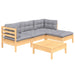 5-tlg. Garten-Lounge-Set mit Grauen Kissen Kiefernholz