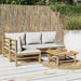 5-tlg. Garten-Lounge-Set mit Hellgrauen Kissen Bambus