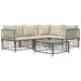 Genieße eine gemütliche Zeit in deinem Außenbereich mit diesem Garten-Lounge-Set! Es ist eine perfekte Bereicherung für deinen Garten bzw. deine Terrasse und hinterlässt einen bleibenden Eindruck! Wetterfestes Material: Poly Rattan ist witterungsbeständig und lässt sich einfach reinigen. Seine Oberfläche weist lange Zeit eine ansprechende Optik auf. Es ist kostengünstiger als andere Materialien und bietet gleichzeitig hohe Qualität, Komfort und einen ästhetisches Look.Stabiler und robuster Rahmen: Der Stahlrahmen verleiht dem Lounge-Set Robustheit und Stabilität.Bequemes Sitzgefühl: Dank der Rückenlehnen bietet das Lounge-Set hohen Sitzkomfort. Zum hohen Sitzkomfort tragen auch die dick gepolsterten Kissen bei.Robuste Tischplatte: Die stabile Tischplatte des Couchtisches bietet den perfekten Platz für Speisen, Getränke, Vasen, Obstschalen und verschiedene Dekoartikel.Modulares Design: Die Gartengarnitur lässt sich flexibel und leicht umstellen und auch mit anderen modularen Elementen aus unserem Webshop kombinieren, um dein ganz persönliches Garten-Lounge-Set zu erstellen! Hinweis:Damit deine Gartenmöbel lange schön bleiben, empfehlen wir dir, sie mit einer wasserdichten Hülle zu schützen.