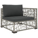 Diese Sofagarnitur aus Rattan vereint Stil und Funktionalität und wird ein echter Hingucker in deinem Garten bzw. auf deiner Terrasse sein. Das gesamte Set lässt sich das ganze Jahr über im Freien verwenden. Dank des witterungsbeständigen und wasserdichten PE-Rattans ist das Lounge-Set pflegeleicht, strapazierfähig und für den täglichen Gebrauch geeignet. Die Sitzgruppe verfügt über robuste Stahlrahmen aus pulverbeschichtetem Stahl und ist daher auf eine lange Lebensdauer ausgelegt. Dank der Leichtbauweise und des modularen Designs lässt sie sich auch flexibel umstellen und an jede Umgebung anpassen. Die dick gepolsterten, abnehmbaren Kissen sorgen für höchsten Komfort. Die Lieferung umfasst 2 Ecksofas, 1 Mittelsofa, 1 Fußhocker, 1 Couchtisch, 4 Sitzkissen und 3 Rückenkissen. Hinweis: Wir empfehlen, das Set bei Regen, Schnee und Frost abzudecken.