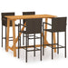 Dieses Gartenbar-Set weist ein elegantes Design auf und wird ganz bestimmt der neue Blickfang in Ihrem Garten, auf dem Balkon oder auf Ihrer Terrasse sein. Der Tisch besteht aus massivem Akazienholz mit Ölfinish, was ihn stabil, langlebig und pflegeleicht macht. Die Barhocker verfügen über ein pulverbeschichtetes Stahlgestell, das mit wetterbeständigem PE-Rattan überzogen ist, und sind daher robust und leicht zu reinigen. Hinweis: Wir empfehlen, das Set bei Regen, Schnee und Frost abzudecken.