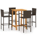 Dieses Gartenbar-Set weist ein elegantes Design auf und wird ganz bestimmt der neue Blickfang in Ihrem Garten, auf dem Balkon oder auf Ihrer Terrasse sein. Der Tisch besteht aus massivem Akazienholz mit Ölfinish, was ihn stabil, langlebig und pflegeleicht macht. Die Barhocker verfügen über ein pulverbeschichtetes Stahlgestell, das mit wetterbeständigem PE-Rattan überzogen ist, und sind daher robust und leicht zu reinigen. Hinweis: Wir empfehlen, das Set bei Regen, Schnee und Frost abzudecken.