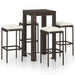 5-tlg. Gartenbar-Set mit Kissen Poly Rattan Braun
