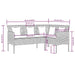 Diese stilvolle und bequeme Sofagarnitur ist die ideale Wahl, um sich zu entspannen und das Wetter zu genießen, ein Nickerchen zu machen oder mit Ihrer Familie oder Freunden zu plaudern. Mit einem robusten Rahmen aus pulverbeschichtetem Stahl gefertigt, ist dieses Garten-Lounge-Set sehr stabil und langlebig. Dank des witterungsbeständigen PE-Rattans lässt sich die Sofagarnitur leicht reinigen und ist für den täglichen Gebrauch bestens geeignet. Dank seiner Leichtbauweise lässt sich dieses Gartenmöbel-Set leicht umstellen, um sich in jede Umgebung einzufügen. Die dick gepolsterten Kissen bieten Ihnen zusätzlichen Komfort. Hinweis: Um die Lebensdauer Ihrer Gartenmöbel zu verlängern, empfehlen wir Ihnen, diese regelmäßig zu reinigen und im Freien vor Niederschlägen oder starken Sonnenstrahlen zu schützen.Reinigung: Verwenden Sie eine milde Seifenlösung.Lagerung: Wenn möglich, an einem kühlen, trockenen Ort im Innenbereich lagern. Wenn das Produkt im Freien gelagert wird, schützen Sie es mit einer wasserdichten Abdeckung. Wischen und trocknen Sie das überschüssige Wasser oder den Schnee nach Regen oder Schneefall von ebenen Flächen. Sorgen Sie für eine ausreichende Luftzirkulation, um feuchtigkeitsbedingte Schäden zu vermeiden.