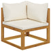 Dieses Longue-Set ist eine perfekte Kombination aus Stil und Funktionalität. Auf dieser Sitzgruppe können Sie entspannende und beruhigende Momente mit Ihrer Familie und Freunden verbringen. Dank des massiven Akazienholzrahmens ist die Sofagarnitur stark, robust und langlebig; das mit Holzöl behandelte Gartenmöbel ist für den Außenbereich geeignet. Die abnehmbaren Sitz- und Rückenpolster sind dick, um einen hohen Sitzkomfort zu bieten. Ein Couchtisch mit einzigartigem Lattenrost-Design ist ebenfalls dabei. Dank des modularen Aufbaus können alle Teile nach Bedarf angeordnet und angepasst werden. Diese Sitzgruppe wird sicherlich der Mittelpunkt Ihres Gartens oder Ihrer Terrasse sein. Die Lieferung umfasst 1 x Ecksofa, 2 x Mittelsofa, 2 x Fußstütze, 1 x Tisch, 5 x Sitzauflagen, 4 x Rückenpolster. Hinweis: Wir empfehlen, das Gartenmöbel-Set bei Regen, Schnee und Frost abzudecken.