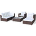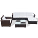 Diese Rattan-Gartensofagarnitur vereint Stil und Funktionalität und wird zum Hingucker in Ihrem Garten oder auf der Terrasse sein. Das gesamte Möbel-Set ist für die ganzjährige Nutzung im Freien vorgesehen. Dank des witterungsbeständigen und wasserdichten PE-Rattans ist das Lounge-Set pflegeleicht, strapazierfähig und für den täglichen Gebrauch bestens geeignet. Das Gartensofa-Set verfügt über einen stabilen, pulverbeschichteten Stahlrahmen, der extrem langlebig ist. Die leichtgewichtige und modulare Bauweise macht es möglich, dass Sie die Sitzgruppe, passend zu den Platzverhältnissen vor Ort, immer wieder neu aufstellen bzw. umstellen. Die dick gepolsterten, abnehmbaren Kissen sorgen für hohen Sitzkomfort. Der Lieferumfang umfasst 2 Sofa-Ecken, 1 Sofa-Mittelstück, 1 Sessel, 1 Hocker, 1 Couchtisch, 5 Sitzpolster und 6 Rückenkissen.