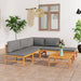 6-tlg. Garten-Lounge-Set mit Grauen Kissen Massivholz Teak