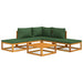 6-tlg. Garten-Lounge-Set mit Grünen Kissen Massivholz