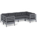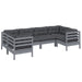 6-tlg. Garten-Lounge-Set mit Kissen Grau Kiefernholz