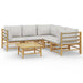 Genieße eine Tasse Kaffee oder Tee bei schönem Wetter in deinem Außenbereich mit diesem eleganten Garten-Lounge-Set aus Bambus! Langlebiges Material: Bambus ist für seine Flexibilität und Festigkeit bekannt. Bambus-Möbel sind eine gute Wahl, wenn du nach robusten Gartenmöbeln aus natürlichen Materialien suchst.Bequemes Sitzgefühl: Dank der Rückenlehne und der Armlehnen bietet das Gartensofa höchsten Sitzkomfort. Zum hohen Sitzkomfort tragen auch die dick gepolsterten Sitz- und Rückenkissen bei.Praktischer Tisch: Der robuste Tisch bietet den perfekten Platz für Speisen, Getränke und verschiedene Dekoartikel.Modularer Aufbau: Das Loungemöbel-Set ist flexibel und leicht zu umstellen, so dass du es mit anderen modularen Sofateilen im Webshop kombinieren kannst, um dein eigenes persönliches Outdoor-Lounge-Set zu erstellen! Hinweis:Damit deine Gartenmöbel lange schön bleiben, empfehlen wir dir, sie mit einer wasserdichten Hülle zu schützen.Gut zu wissen:Um die Montage so einfach wie möglich zu machen, wird jedes Produkt mit einer Anleitung geliefert.