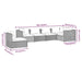 Genießen Sie Ihre Freizeit mit diesem trendigen Garten-Lounge-Set! Es kann eine Vielzahl unterschiedlicher Anforderungen erfüllen. Robuster Rahmen: Dieses Garten-Lounge-Set verfügt über einen stabilen, pulverbeschichteten Stahlrahmen und verchromte Kunststofffüße, die Stabilität und Langlebigkeit gewährleisten.Premium-Material: Das Gartensofa-Set ist aus wasserabweisendem PE-Rattan gefertigt, wodurch es leicht zu reinigen, strapazierfähig und für den täglichen Gebrauch im Freien geeignet ist.Modulares Design: Dank des modularen Designs lässt sich das Möbelset in jeder beliebigen Anordnung aufstellen oder mit anderen modularen Sofaelementen kombinieren, um Ihren Bedürfnissen gerecht zu werden.Mehr Sitzkomfort: Die dick gepolsterten und abnehmbaren Auflagen und Kissen bieten optimalen Komfort beim Entspannen im Freien. Hinweis:Um die Lebensdauer deiner Gartenmöbel zu verlängern, empfehlen wir dir, sie mit einer wasserdichten Hülle zu schützen.