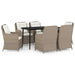 Genießen Sie eine angenehme Mahlzeit oder Ihren Nachmittagstee in Ihrem Außenbereich an dieser Garten-Essgruppe! Mit ihrem eleganten Design wird sie ein echter Hingucker in Ihrem Garten oder auf Ihrer Terrasse sein! Mit einem Stahlrahmen versehen, ist diese praktische Outdoor-Essgruppe robust und stabil. Die Gartenstühle bestehen aus wasserbeständigem und pflegeleichtem PE-Rattan und eignen sich daher perfekt für den Einsatz im Außenbereich. Die ergonomisch gestaltete Form und die dick gepolsterten, abnehmbaren Kissen mit Füllung aus Schaumstoff sorgen für höchsten Sitzkomfort. Die pflegeleichten Kissenbezüge aus Polyester können einfach abgenommen und gewaschen werden. Zudem lässt sich die glatte Tischplatte aus Glas mit einem feuchten Tuch einfach reinigen und bietet einen ausgezeichneten Platz für Speisen, Getränke und verschiedene Dekoartikel. Hinweis: Um die Lebensdauer deiner Gartenmöbel zu verlängern, empfehlen wir dir, sie mit einer wasserdichten Abdeckung zu schützen.
