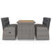 Diese Garten-Essgruppe mit elegantem und zeitgemäßem Design ist eine auffällige Ergänzung Ihres Außenbereichs. Dieses Gartenmöbel-Set verfügt über einen stabilen pulverbeschichteten Stahlrahmen, der für Stabilität und Langlebigkeit sorgt. Das PE-Rattan macht diese Essgruppe pflegeleicht, strapazierfähig und für den täglichen Gebrauch im Freien geeignet. Die Tischplatte besteht aus massivem Akazienholz, einem tropischen Hartholz, das wetterbeständig und langlebig ist. Die Liegestühle bieten höchsten Sitzkomfort und hervorragenden Halt. Die Rückenlehne lässt sich mit dem seitlichen Knopf nach Belieben verstellen. Darüber hinaus sind die dicken und weichen Sitz- und Rückenkissen sehr bequem. Die pflegeleichten Polyester-Kissenbezüge können leicht abgenommen und gewaschen werden. Hinweis: Wir empfehlen, das Set bei Regen, Schnee und Frost abzudecken, um seine Lebensdauer zu verlängern.