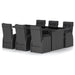 Diese Garten-Essgruppe mit elegantem und zeitgemäßem Design ist eine auffällige Ergänzung Ihres Außenbereichs. Dieses Gartenmöbel-Set verfügt über einen stabilen pulverbeschichteten Stahlrahmen, der für Stabilität und Langlebigkeit sorgt. Das PE-Rattan macht diese Essgruppe pflegeleicht, strapazierfähig und für den täglichen Gebrauch im Freien geeignet. Die Glastischplatte lässt sich leicht mit einem feuchten Tuch reinigen. Die Liegestühle bieten höchsten Sitzkomfort und hervorragenden Halt. Die Rückenlehne lässt sich mit dem seitlichen Knopf nach Belieben einfach verstellen. Darüber hinaus sind die dicken und weichen Sitz- und Rückenkissen sehr bequem. Die pflegeleichten Polyester-Kissenbezüge können leicht abgenommen und gewaschen werden. Hinweis: Wir empfehlen, das Set bei Regen, Schnee und Frost abzudecken, um seine Lebensdauer zu verlängern.