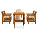 Schaffen Sie mit dieser Garten-Essgruppe eine überzeugende und zusammenhängende Ästhetik in Ihrem Außenbereich! Der Esstisch besteht aus massivem Akazienholz, einem Hartholz mit dichter Maserung, das ihn robust, langlebig und pflegeleicht macht. Auf der Holztischplatte können Speisen, Getränke und andere Gegenstände abgestellt werden. Mit einem Holzrahmen mit Öl-Finish verleihen diese Esszimmerstühle Ihrer Terrasse oder Ihrem Garten einen klassischen Look und bieten Ihrem Außenbereich ein natürliches Gefühl. Die dick gepolsterten Kissen sorgen zudem für zusätzlichen Sitzkomfort beim Liegen. Außerdem ist dieses Set mit einem feuchten Tuch leicht zu reinigen. Hinweis: Um die Lebensdauer deiner Gartenmöbel zu verlängern, empfehlen wir dir, sie mit einer wasserdichten Abdeckung zu schützen.
