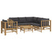 7-tlg. Garten-Lounge-Set mit Dunkelgrauen Kissen Bambus