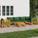7-tlg. Garten-Lounge-Set mit Grünen Kissen Massivholz
