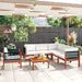 Dieses Gartensofa-Set ist die ideale Wahl, um sich zu entspannen und das Wetter zu genießen, ein Nickerchen zu machen oder mit Ihrer Familie oder Freunden zu plaudern. Mit ihrem zeitlosen Design verleiht diese Sofagarnitur aus Holz Ihrer Terrasse, Ihrem Garten oder Wohnzimmer einen Hauch von rustikalem Charme. Die Gartengarnitur besteht aus hochwertigem, massivem Akazienholz, einem tropischen Hartholz, das witterungsbeständig und äußerst langlebig ist. Dank Öl-Finish weist das Gartenmöbel-Set eine warme Farbe auf und lässt sich auch leicht reinigen und pflegen. Darüber hinaus sind im Lieferumfang auch Sitz- und Rückenkissen mit dicker Polsterung enthalten, die für höchsten Komfort sorgen.