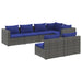 7-tlg. Garten-Lounge-Set mit Kissen Grau Poly Rattan