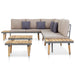Dieses 7-teilige Garten-Loungeset ist eine tolle Bereicherung für Ihren Außenbereich. Mit ihrem geradlinigen, stilvollen Design verleiht sie Ihrem Garten, Balkon oder Ihrer Terrasse einen Hauch moderner Eleganz. Diese pflegeleichte und robuste Garten-Sofagarnitur besteht aus massivem Akazienholz, einem tropischen Hartholz, das witterungsbeständig und jahrelang haltbar ist. Der robuste Stahlrahmen macht das Terrassen-Lounge-Set sehr stabil und langlebig. Des Weiteren bieten die kleinen Holzteile Platz für Snacks, Getränke, Teetassen, Bücher und andere kleine Gegenstände. Das Gartenmöbel-Set wird samt besonders bequemen, dick gepolsterten Kissen geliefert, deren pflegeleichten Polyesterbezüge auch abgenommen und gewaschen werden können. Dieses Garten-Möbelset muss zusammengebaut werden.