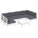 7-tlg. Garten-Lounge-Set mit Kissen Weiß Kiefer Massivholz