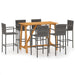 Dieses Gartenbar-Set weist ein elegantes Design auf und wird ganz bestimmt der neue Blickfang in Ihrem Garten, auf dem Balkon oder auf Ihrer Terrasse sein. Der Tisch besteht aus massivem Akazienholz mit Ölfinish, was ihn stabil, langlebig und pflegeleicht macht. Die Barhocker verfügen über ein pulverbeschichtetes Stahlgestell, das mit wetterbeständigem PE-Rattan überzogen ist, und sind daher robust und leicht zu reinigen. Hinweis: Wir empfehlen, das Set bei Regen, Schnee und Frost abzudecken.