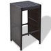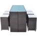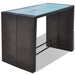 Dieses Gartenbar-Set aus Rattan im eleganten Design wird sicherlich zum Blickfang in Ihrem Garten, auf dem Balkon oder auf Ihrer Terrasse. Aus witterungsbeständigem und wasserdichtem PE-Rattan gefertigt und mit einer 3-teiligen, mattierten Hartglas-Tischplatte versehen, ist das Gartenbar-Set leicht zu reinigen, strapazierfähig und für den täglichen Gebrauch bestens geeignet. Die Stahlrahmen verleihen dem Tisch und dan Barhockern hohe Stabililtät und Langlebigkeit. Durch die Leichtbauweise können alle Teile einfach umstellt werden. Die dicken, abnehmbaren Sitzpolster bieten ultimativen Sitzkomfort. Die mit Reißverschlüssen versehenen Kissenbezüge können leicht abgenommen und gewaschen werden. Lieferumfang: 1 Glasplatten-Tisch, 6 Barhocker und 6 abnehmbare Sitzkissen. Hinweis: Wir empfehlen, das Set bei Regen, Schnee und Frost abzudecken.