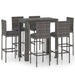 7-tlg. Gartenbar-Set mit Kissen Poly Rattan Grau