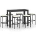 7-tlg. Gartenbar-Set mit Kissen Poly Rattan Schwarz
