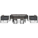 Genießen Sie Ihre Freizeit auf diesem eleganten Lounge-Set aus Poly-Rattan. Dieses Sofa ist modular aufgebaut und kann mehrfach neu konfiguriert werden. Es passt perfekt auf Ihre Terrasse, Ihren Garten oder Patio. Die Garten-Sofagarnitur ist aus wetterbeständigem Poly-Rattan gefertigt. Es ist leicht zu reinigen, langlebig und für den täglichen Gebrauch geeignet. Der Esstisch besteht aus gehärtetem Glas und ist daher stark. Der pulverbeschichtete Aluminiumrahmen macht das Set sehr robust. Dank der Leichtbauweise ist das Terrassenmöbel leicht zu umstellen. Sie können sie frei kombinieren, wie Sie möchten. Zusätzlich bieten gepolsterte Sitzkissen und Rückenkissen ultimativen Sitzkomfort. Hinweis: Wir empfehlen, das Set bei Regen, Schnee oder Frost abzudecken.