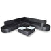 Diese Loungegruppe aus Poly-Rattan vereint Stil und Funktionalität und wird zum echten Hingucker in Ihrem Garten oder auf der Terrasse. Sie kann das ganze Jahr über im Außenbereich verwendet werden. Die Loungegruppe ist aus witterungsbeständigem, hochwertigem PE-Rattan gefertigt; sie ist demnach strapazierfähig genug, um zu allen Jahreszeiten von der ganzen Familie verwendet zu werden. Sie ist außerdem beständig gegen UV-Licht, Chlor und Salzwasser und hat einen stabilen, pulverbeschichteten Stahlrahmen und rostfreie Kunststoff-Füße. Dank der Leichtbau-Konstruktion ist das Set auch einfach zu verstellen. Die dick-gepolsterten, abnehmbaren Sitz- und Rückenpolster sind sehr komfortabel. Die pflegeleichten Polyesterbezüge mit verdeckten Reißverschlüssen können auch abgenommen und gewaschen werden. Die Rattan-Sitzgruppe lässt sich flexibel umstellen und so jeder Umgebung anpassen. Lieferung enthält 2 x Sitzecke, 3 x Sitz ohne Armlehnen, 2 x Hocker, 1 x Couchtisch mit Glasplatte, 7 x Sitzpolster, 7 x Rückenpolster und 5 x Kissen. Hinweis: Wir empfehlen, das Set bei Regen, Schnee oder Frost abzudecken.