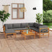 8-tlg. Garten-Lounge-Set mit Grauen Kissen Massivholz Teak