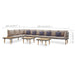 Dieses 8-teilige Garten-Loungeset ist eine tolle Bereicherung für Ihren Außenbereich. Mit ihrem geradlinigen, stilvollen Design verleiht sie Ihrem Garten, Balkon oder Ihrer Terrasse einen Hauch moderner Eleganz. Diese pflegeleichte und robuste Garten-Sofagarnitur besteht aus massivem Akazienholz, einem tropischen Hartholz, das witterungsbeständig und jahrelang haltbar ist. Der robuste Stahlrahmen macht das Terrassen-Lounge-Set sehr stabil und langlebig. Des Weiteren bieten die kleinen Holzteile Platz für Snacks, Getränke, Teetassen, Bücher und andere kleine Gegenstände. Das Gartenmöbel-Set wird samt besonders bequemen, dick gepolsterten Kissen geliefert, deren pflegeleichten Polyesterbezüge auch abgenommen und gewaschen werden können. Dieses Garten-Möbelset muss zusammengebaut werden.