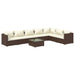 Entspannen Sie sich und genießen Sie Ihre Freizeit mit diesem trendigen Garten-Lounge-Set! Es ist dafür gedacht, eine Vielzahl unterschiedlicher Bedürfnisse zu erfüllen. Robuster Rahmen: Dieses Garten-Lounge-Set verfügt über einen stabilen, pulverbeschichteten Stahlrahmen und verchromte Kunststofffüße, die Stabilität und Langlebigkeit gewährleisten.Premium-Material: Das Gartensofa-Set ist aus wasserdichtem PE-Rattan gefertigt, wodurch es leicht zu reinigen, strapazierfähig und für den täglichen Gebrauch im Freien geeignet ist.Modulares Design: Darüber hinaus ermöglicht das modulare Design die Platzierung der Sofaelemente in beliebiger Anordnung oder die Kombination mit anderen modularen Sofa-Elementen, um Ihren Anforderungen zu entsprechen.Bequeme Kissen: Die dick gepolsterten und abnehmbaren Sitzkissen und Rückenkissen sorgen für optimalen Komfort. Hinweis:Um die Lebensdauer deiner Gartenmöbel zu verlängern, empfehlen wir dir, sie mit einer wasserdichten Hülle zu schützen.