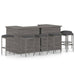 Dieses Gartenbar-Set im eleganten Design wird sicherlich zum Blickfang in Ihrem Garten, auf dem Balkon oder auf Ihrer Terrasse. Dieses Bar-Set aus wetterbeständigem und wasserdichtem PE-Rattan ist leicht zu reinigen, strapazierfähig und für den täglichen Gebrauch geeignet. Der pulverbeschichtete Stahlrahmen macht den Tisch und die Hocker sehr robust und langlebig. Dank der Leichtbauweise sind alle Möbel leicht zu umstellen. Die dicken, abnehmbaren Sitzkissen sind sehr bequem. Die Kissenbezüge mit Reißverschluss können leicht abgenommen und gewaschen werden. Hinweis: Wir empfehlen, das Set bei Regen, Schnee und Frost abzudecken.
