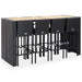 Dieses Bar-Set aus Poly Rattan wird ein Blickfang in Ihrem Garten sein. Dank des wasserfesten PE-Rattans ist das Terrassen-Barset pflegeleicht, strapazierfähig und für den täglichen Gebrauch im Freien geeignet. Das Set wird mit einem Retro-Tisch geliefert, der zu unseren eleganten Stühlen passt. Die Tischplatte besteht aus massivem Akazienholz, das langlebig und leicht zu reinigen ist. Die pulverbeschichteten Stahlrahmen machen das Set stabil und langlebig. Da die Konstruktion jedoch auch leicht ist, lassen sich alle Artikel spielend umher bewegen. Es wird auch mit den äußerst bequemen, dick gepolsterten Sitzkissen für ultimativen Komfort geliefert. Die pflegeleichte Polyesterbezüge können auch abgenommen und gewaschen werden. Das Set ist kinderleicht zu montieren. Hinweis: Wir empfehlen, das Set bei Regen, Schnee und Frost abzudecken, um eine lange Lebensdauer zu gewährleisten.
