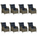 Schaffen Sie mit dieser Garten-Essgruppe eine überzeugende und zusammenhängende Ästhetik in Ihrem Außenbereich! Der Esstisch ist aus massivem Akazienholz gefertigt und mit einem Ölfinish versehen, was ihn stabil, langlebig und pflegeleicht macht. Der Gartenstuhl verfügt über einen pulverbeschichteten Stahlrahmen, der mit rundem PE-Rattan überzogen ist, und ist daher robust und leicht zu reinigen. Die dick gepolsterten Kissen sorgen für zusätzlichen Komfort. Der Kissenbezug ist mit einem Reißverschluss versehen und somit abnehmbar und waschbar. Dank des einzigartigen Gasfedermechanismus lässt sich die Rückenlehne an Ihre bevorzugte Position anpassen. Durch Berühren des seitlichen Knopfes kann die Rückenlehne auch zurückgelehnt werden, um eine bequeme Liegeposition zu bieten. Darüber hinaus lässt sich der Gartenstuhl dank seiner Leichtbauweise auch leicht umstellen. Wichtiger Hinweis: Wir empfehlen, die Essgruppe bei Regen, Schnee und Frost für eine lange Lebensdauer abzudecken.
