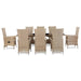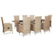 Das stilvolle Gartenmöbel-Set aus Poly Rattan wird zum Mittelpunkt Ihres Gartens oder Ihrer Terrasse! Diese Essgruppe ist mit ihrem eleganten, modernen Design eine hervorragende Wahl für entspannte Mahlzeiten im Freien oder unvergessliche Wochenend- und Abendstunden im Garten. Aus witterungsbeständigem und wasserabweisendem PE-Rattan gefertigt, ist die Essgruppe leicht zu reinigen, strapazierfähig und für den täglichen Gebrauch bestens geeignet. Die pulverbeschichteten Stahlrahmen verleihen Tisch und Stühlen Stabilität und Robustheit. Die Tischplatte besteht aus Glas und lässt sich daher ganz einfach reinigen. Die 8 Stühle verfügen über verstellbare Rückenlehnen und Fußstützen. Durch Berühren des Knopfes an der Seite neigt sich die Rückenlehne nach hinten. Dank ihrer Leichtbauweise lassen sich die Möbelstücke einfach umstellen. Die dicken und weichen, mit Schaumstoff gefüllten Sitzkissen sind äußerst komfortabel und mit wasserabweisendem Polyester bezogen. Die Polsterbezüge mit Reißverschlüssen können leicht entfernt und gewaschen werden. Dieses Gartenmöbelset beinhaltet 1 Tisch, 8 Stühle mit Gasdruckfeder und 8 Auflagen. Hinweis: Wir empfehlen, das Set bei Regen, Schnee und Frost abzudecken.