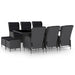 9-tlg. Garten-Essgruppe mit Auflagen Poly Rattan Dunkelgrau