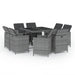 9-tlg. Garten-Essgruppe mit Auflagen Poly Rattan Grau