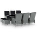 9-tlg. Garten-Essgruppe mit Auflagen Poly Rattan Hellgrau