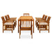 Schaffen Sie mit dieser Garten-Essgruppe eine überzeugende und zusammenhängende Ästhetik in Ihrem Außenbereich! Der Esstisch besteht aus massivem Akazienholz, einem Hartholz mit dichter Maserung, das ihn robust, langlebig und pflegeleicht macht. Auf der Holztischplatte können Speisen, Getränke und andere Gegenstände abgestellt werden. Mit einem Holzrahmen mit Öl-Finish verleihen diese Esszimmerstühle Ihrer Terrasse oder Ihrem Garten einen klassischen Look und bieten Ihrem Außenbereich ein natürliches Gefühl. Die dick gepolsterten Kissen sorgen zudem für zusätzlichen Sitzkomfort beim Liegen. Außerdem ist dieses Set mit einem feuchten Tuch leicht zu reinigen. Hinweis: Um die Lebensdauer Ihrer Gartenmöbel zu verlängern, empfehlen wir Ihnen, diese regelmäßig zu reinigen und im Freien vor Niederschlägen oder starken Sonnenstrahlen zu schützen.Reinigung: Verwenden Sie eine milde Seifenlösung.Lagerung: Wenn möglich, an einem kühlen, trockenen Ort im Innenbereich lagern. Wenn das Produkt im Freien gelagert wird, schützen Sie es mit einer wasserdichten Abdeckung. Wischen und trocknen Sie das überschüssige Wasser oder den Schnee nach Regen oder Schneefall von ebenen Flächen. Sorgen Sie für eine ausreichende Luftzirkulation, um feuchtigkeitsbedingte Schäden zu vermeiden.
