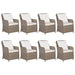 Dieses luxuriöse, runde Essgruppe für 8 Personen aus Poly-Rattan weist ein elegantes Design auf und wird mit Sicherheit der Mittelpunkt Ihres Gartens oder Ihrer Terrasse sein! Dank Stahlrahmen sind der Tisch und die Stühle nicht nur sehr robust und stabil, sondern ermöglichen obendrein aufgrund der Leichtbaukonstruktion ein einfaches Umstellen dieser Gartenmöbel. Dank des witterungsbeständigen und wasserdichten PE-Rattans ist das Gartenmöbel-Set leicht zu reinigen. Die dicken, weichen Polster und Rückenkissen mit vertikaler Faserbaumwollfüllung sind sehr komfortabel. Die leicht zu reinigenden Polyester-Kissenbezüge können mit Hilfe des verdeckten Reißverschlusses entfernt und gewaschen werden. Hinweis: Wir empfehlen, das Set bei Regen, Schnee oder Frost abzudecken.