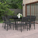 Mit ihrem stilvollen Design und dem robusten Stahlrahmen ist diese Essgruppe die perfekte Wahl für deinen Außenbereich. Die schlichte Eleganz dieser Essgarnitur macht jedes Abendessen zu etwas Besonderem. Diese Garten-Essgruppe besitzt pulverbeschichtete Stahlrahmen, die den Tisch und die Stühle stabil und langlebig machen. Die komfortablen Essstühle sind mit strapazierfähigem und pflegeleichtem Textilene bezogen. Die Stühle lassen sich zudem aufeinander stapeln, um bei Nichtgebrauch Platz zu sparen. Hinweis: Um die Lebensdauer deiner Gartenmöbel zu verlängern, empfehlen wir dir, sie mit einer wasserdichten Abdeckung zu schützen.