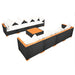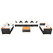 Dieses stilvolle und zugleich komfortable Garten-Lounge-Set aus Poly-Rattan wird ein echter Hingucker in Ihrem Garten oder auf Ihrer Terrasse. Dieses pflegeleichte und strapazierfähige Gartenlounge-Set besteht aus witterungsbeständigem PE-Rattan und ist damit für die tägliche Nutzung im Außenbereich geeignet. Die Möbelteile verfügen über einen robusten und langlebigen, pulverbeschichteten Stahlrahmen. Die abnehmbaren Sitzpolster und Kissen sind äußerst komfortabel. Die leicht zu reinigenden Polyesterbezüge können entfernt und gewaschen werden. Die Tischplatte und das Oberteil der Arm-/Rückenlehnen bestehen aus strapazierfähigem WPC in brauner Farbe. Zudem ist das Rattan-Sofa-Set komplett modular, wodurch es völlig flexibel und leicht umzustellen ist, um in jede Umgebung zu passen. Hinweis: Wir empfehlen, das Set bei Regen, Schnee und Frost abzudecken.