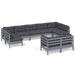 9-tlg. Garten-Lounge-Set mit Kissen Grau Kiefer Massivholz