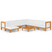 Dieses Garten-Lounge-Set kombiniert Stil und Funktionalität und ist die ideale Wahl, um sich zu entspannen und das Wetter zu genießen, ein Nickerchen zu machen oder mit Ihrer Familie oder Freunden zu plaudern. Aus massivem Akazienholz gefertigt, ist dieses Gartenmöbel-Set pflegeleicht, strapazierfähig und alltagstauglich. Das Möbel-Set hat eine solide Konstruktion und benötigt wenig Wartung. Der Tisch ist ideal, um Speisen und Getränke griffbereit aufzubewahren. Dank des Bezugs aus 100% Polyester und der dicken Polsterung sind die mitgelieferten Kissen weich und bieten höchsten Komfort. Dieses Lounge-Set ist außerdem leicht und modular, wodurch es vollständig flexibel und leicht an jede Umgebung angepasst werden kann. Sie können es mit anderen modularen Sofa-Elementen kombinieren, um Ihre persönlichen Garten-Lounge-Set-Konfigurationen zu erstellen! Hinweis: Um die Lebensdauer Ihrer Gartenmöbel zu verlängern, empfehlen wir Ihnen, diese regelmäßig zu reinigen und im Freien vor Niederschlägen oder starken Sonnenstrahlen zu schützen.Reinigung: Verwenden Sie eine milde Seifenlösung.Lagerung: Wenn möglich, an einem kühlen, trockenen Ort im Innenbereich lagern. Wenn das Produkt im Freien gelagert wird, schützen Sie es mit einer wasserdichten Abdeckung. Wischen und trocknen Sie das überschüssige Wasser oder den Schnee nach Regen oder Schneefall von ebenen Flächen. Sorgen Sie für eine ausreichende Luftzirkulation, um feuchtigkeitsbedingte Schäden zu vermeiden.